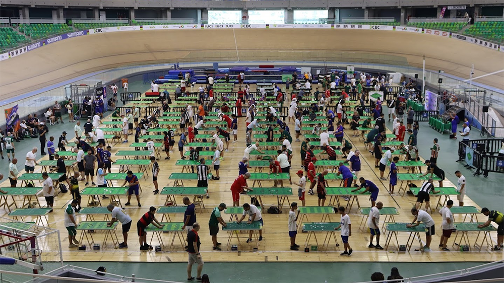 Épico, marcante, histórico… Não faltam adjetivos para definir o real significado da V Expo Futebol de Mesa, realizada nos dias 21 e 22 de março, no faraônico Velódromo Olímpico do Rio de Janeiro, na Barra da Tijuca. A grandeza do complexo esportivo fez jus ao evento promovido pela Fefumerj, que reuniu mais de 300 botonistas de 20 clubes e associações de diferentes regiões do Brasil nas regras Dadinho, 12 Toques, 1 Toque Liso e 3 Toques, em disputas individuais e por equipes. De forma simultânea, todos puderam mostrar suas habilidades nas 138 mesas disponíveis no recinto – um recorde no esporte em nível nacional – em busca de vitórias e títulos.