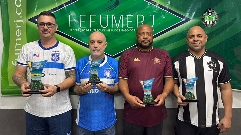 Tiago Rosa, com a vantagem do empate, viu Alexandre Dantas ter a última chance em uma falta nos momentos finais. No futebol de mesa, especialmente na regra 1 Toque, a imprevisibilidade é constante. E foi no detalhe que Alexandre acertou a trave, mantendo o placar em 0 a 0. Com esse resultado, Tiago Rosa sagrou-se campeão pela primeira vez, alcançando o topo da FEFUMERJ! O pódio foi completado por Sandro, agora representando a Portuguesa, em terceiro lugar, e Robson Marfa, do Botafogo, que garantiu a quarta posição.