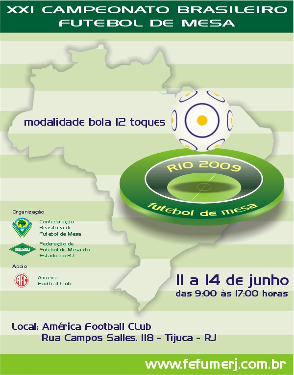 Estamos oficializando Convite aos Botonistas, Clubes e Federações para a participação no XXI Campeonato Brasileiro de Futebol de Mesa, tendo a Confederação Brasileira de Futebol de Mesa e a FEFUMERJ – Federação de Futebol de Mesa do Estado do Rio de Janeiro, organizadores do evento, definido que o mesmo será realizado na cidade do Rio de Janeiro.
